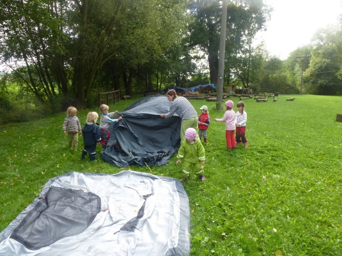 Stavíme si stan, tentokrát na dolní louce