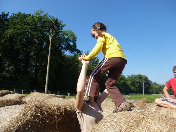 Nejlepší hřiště jsou balíky. Tady je potřeba stavět most