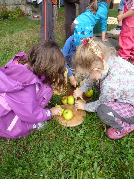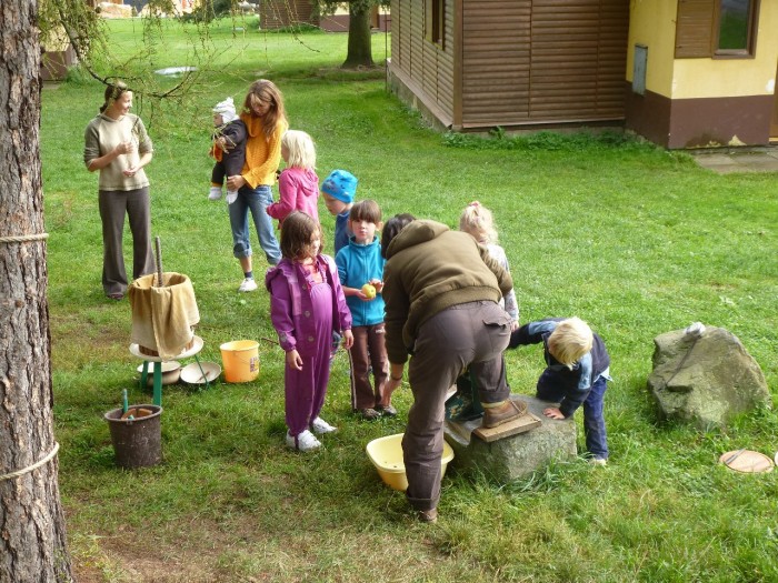 Tak jsem se zase sešli u naší chaloupky, I když nás zářijové sluníčko příliš nezahřálo, tak jsme si ho pěkně užili. Povídali jsme si hlavně o ovoci, a tak jsme ochutnávali jak jen se dalo. Uvařili jsme si kompot a vylisovali mošt. MŇAM!