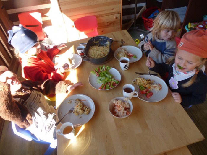 Svačina po práci. Popřejeme si dobrou chuť a pak už se jen kouše a vyměňuje a rozděluje...