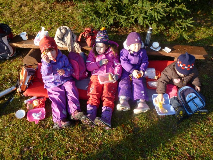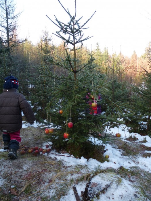 Vydali jsme se do ohrady dát zvířátkům dobroty a do lesa vyzdobit stromeček pro divou zvěř. Jaké bylo překvapení, že jsme druhý den pod ozdobeným stromkem našli dárečky.